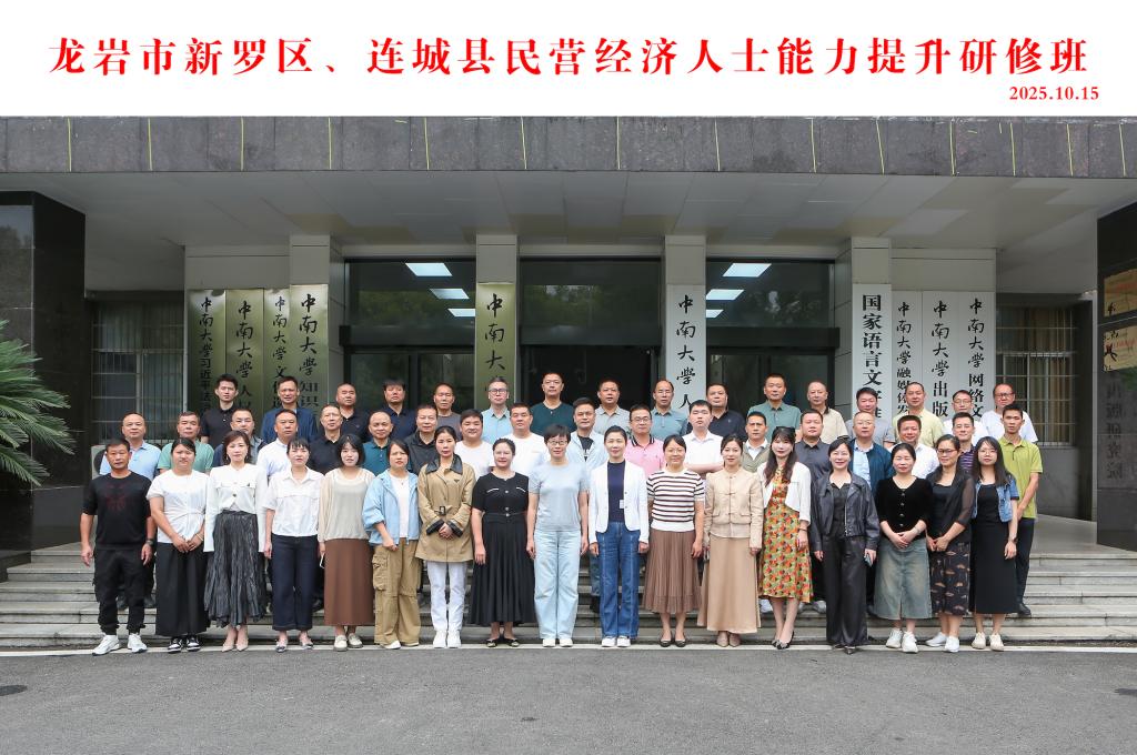 2025年10月14日上午,龙岩市新罗区、连城县民营经济人士研修班在中南大学麓南校区顺利开班,全班50名学员参加本期学习培训。
