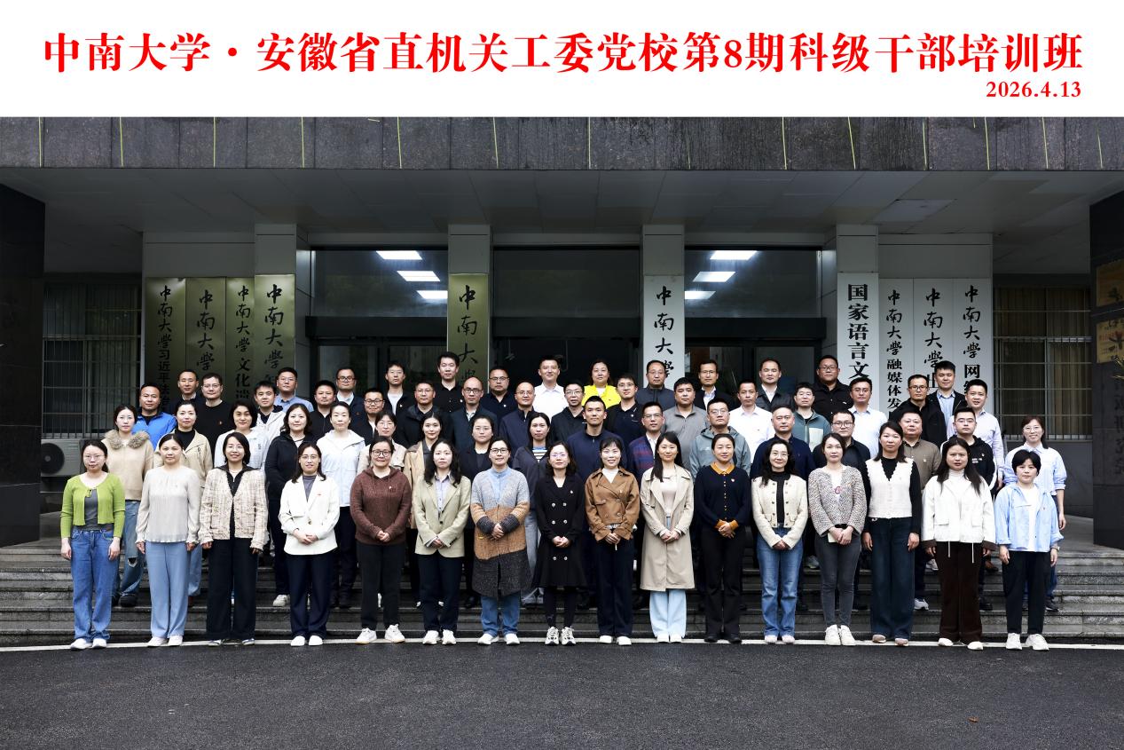 2026年4月13日至4月17日期间,由中南大学法学院公务员培训中心承办的安徽省直机关工委党校第8期科级干部培训班在中南大学麓南校区顺利举行,共计60名学员参加此次培训。